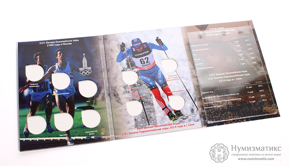 Альбом-планшет из плотного картона для коллекционных монет СССР и Российской Федерации, выпущенных в честь Олимпиад 1980 и 2014