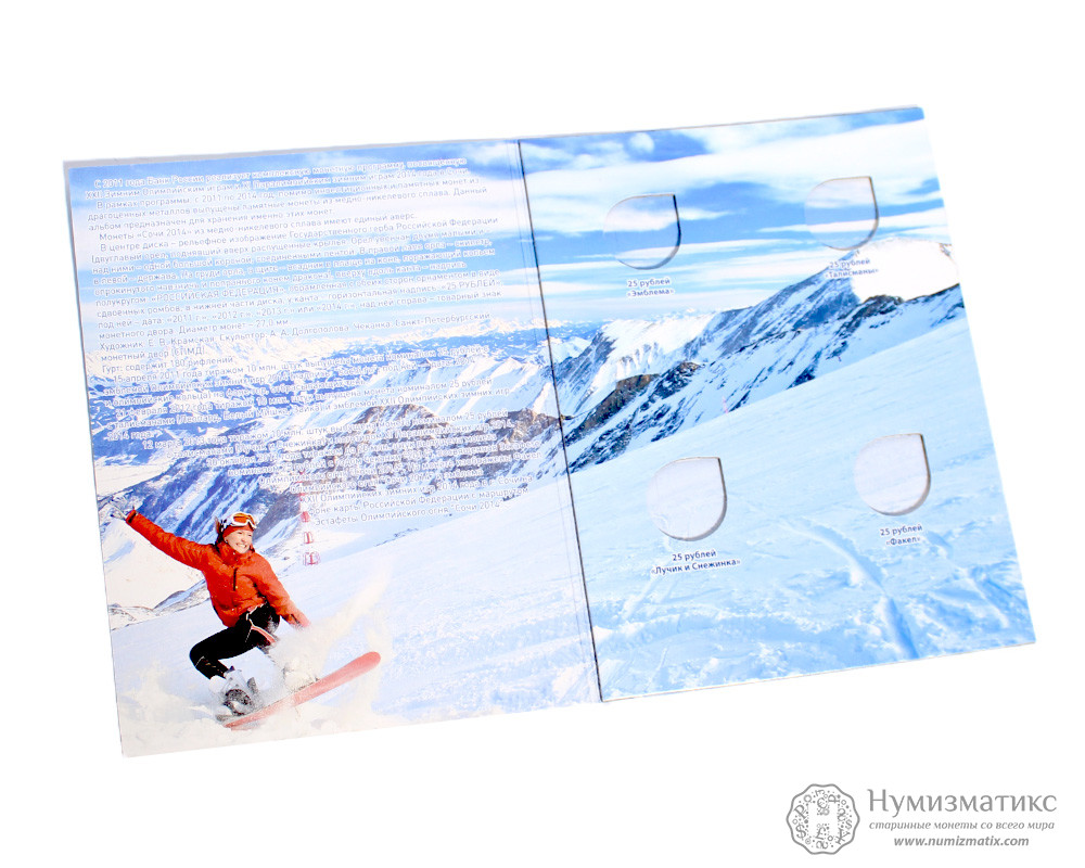 Альбом для хранения памятных медно-никелевых монет России 2011-2014 гг., посвященных зимней Олимпиаде в Сочи 2014