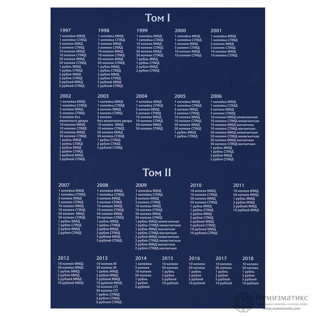 Альбомы-планшеты «Монеты России регулярного выпуска 1997−2018 по годам» I и II части