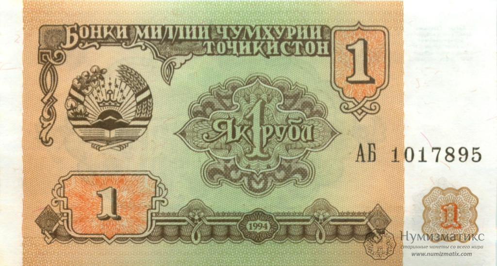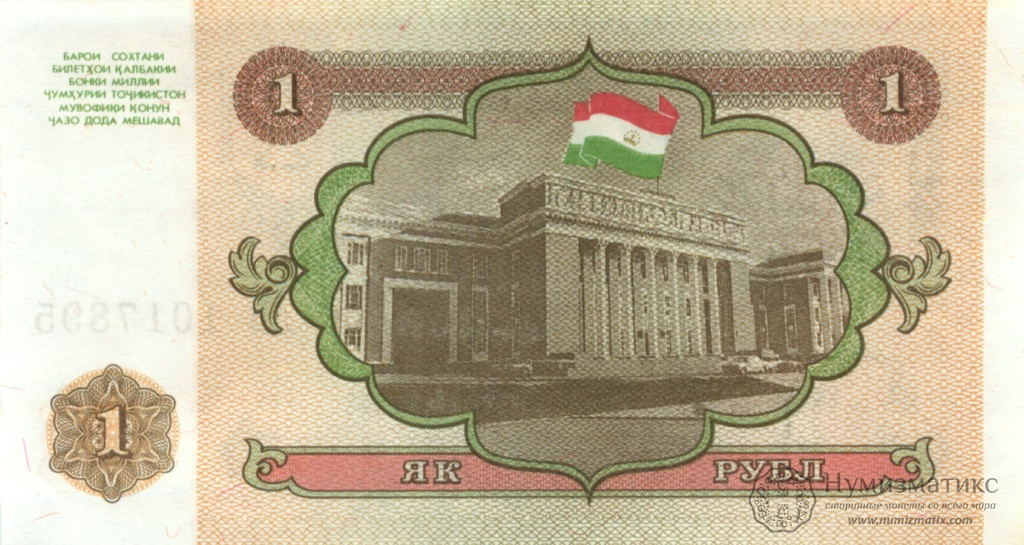 Банкнота ТаджикистанаРазмер: 102х55ммСостояние: не была в обращении