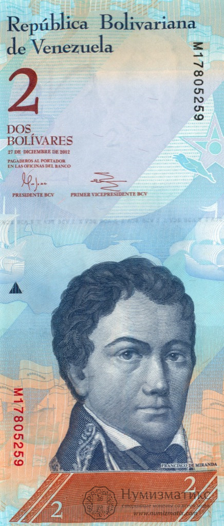 Банкнота ВенесуэлыРазмер: 155 х 69 ммСостояние: не была в обращении