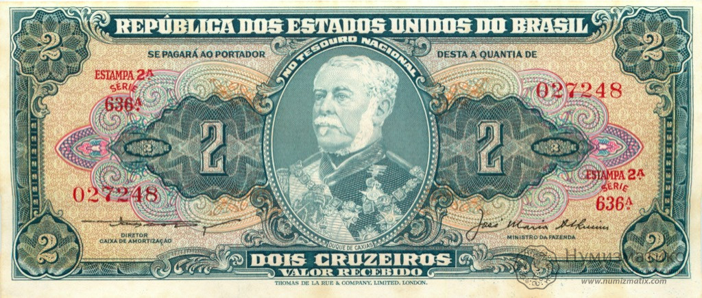 Банкнота БразилииРазмер: 167 х 68 ммСостояние: не была в обращении