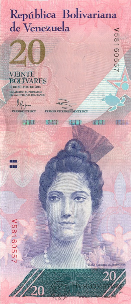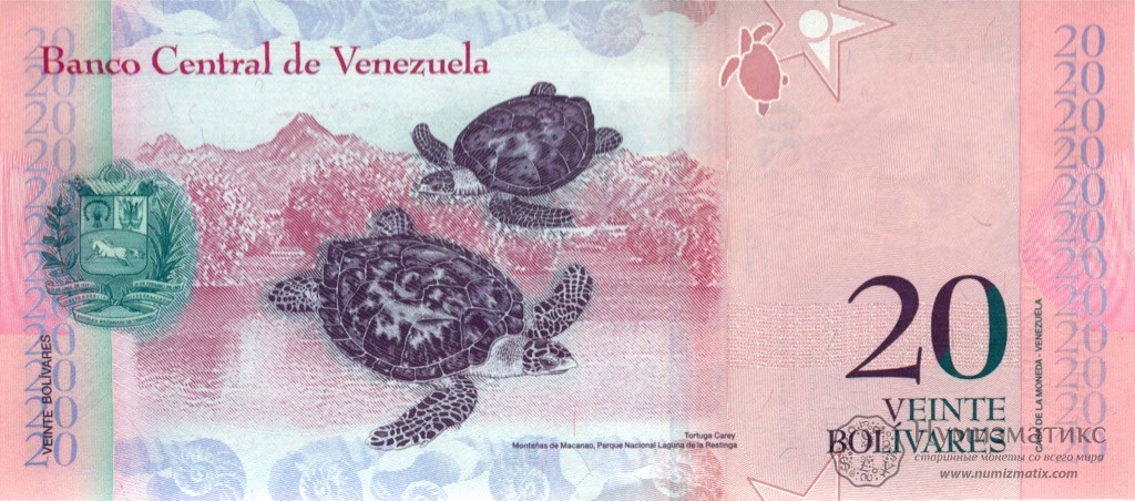 Банкнота ВенесуэлыРазмер: 155 х 69 ммСостояние: не была в обращении