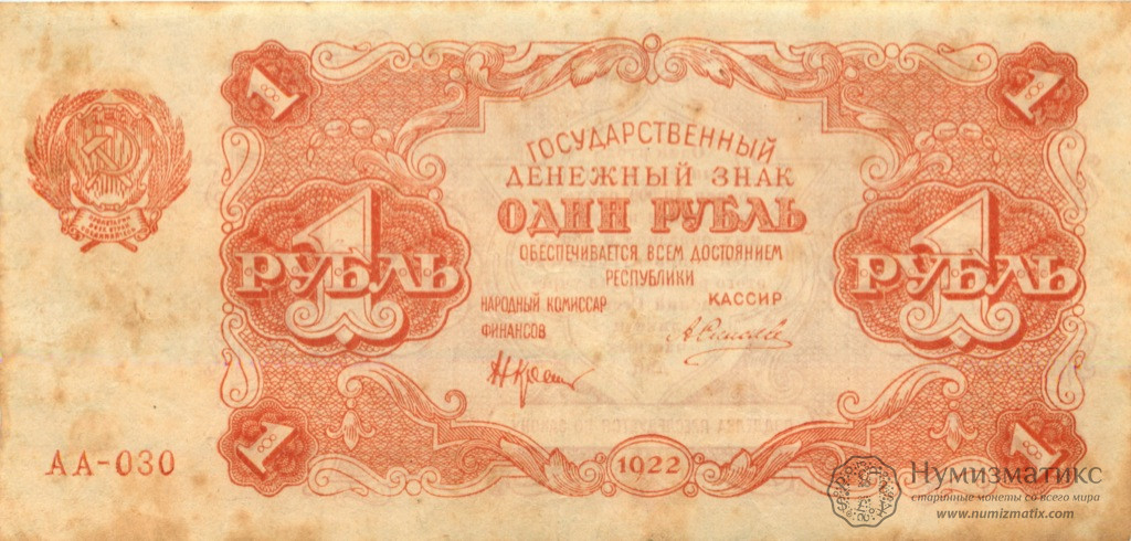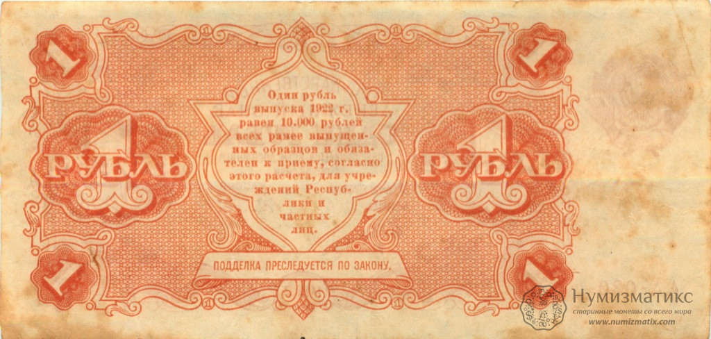 1 рубль 1922 года — СССР — Банкноты СССР
