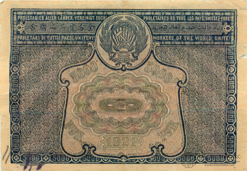 5000 рублей 1921 года АЛ-082 — РСФСР