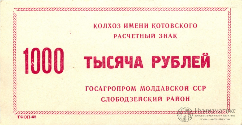 1000 рублей — Колхоз им. Котовского — Молдавия