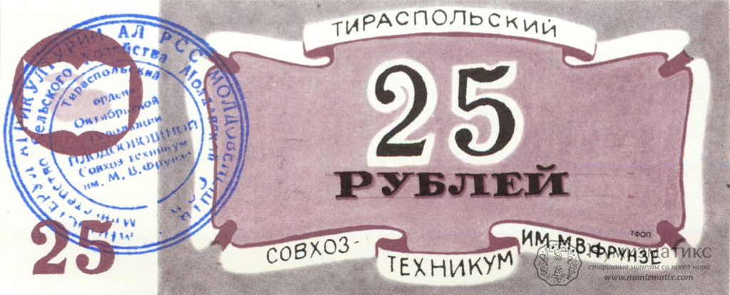 25 рублей — Совхоз-техникум им. Фрунзе — Тирасполь, Молдавия