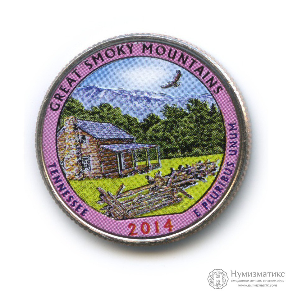 25 центов (квотер) 2014 — Национальный парк Грейт-Смоки-Маунтинс (в цвете) — США