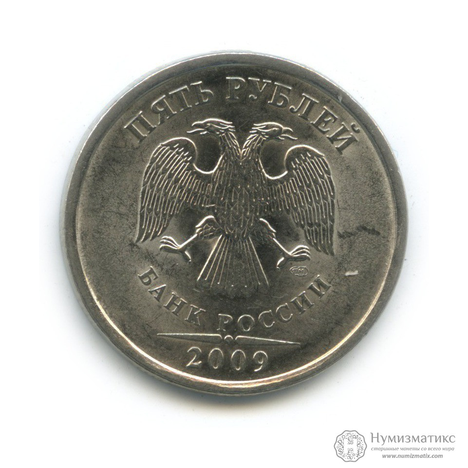 Монета регулярного выпуска «5 рублей 2009 года».