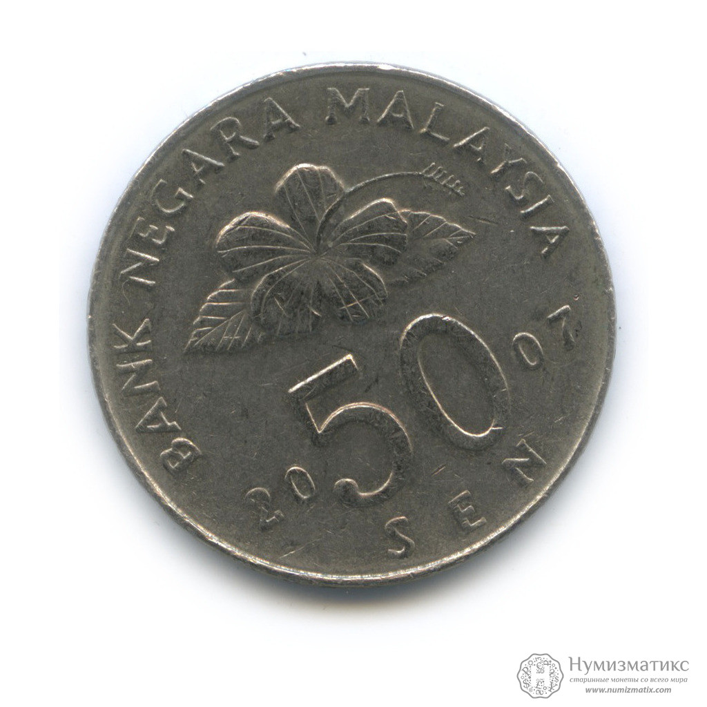 Монета регулярного выпуска «50 сенов 2007 года».Федерация Малайзия (1967-2017).Медно-никелевый сплав.