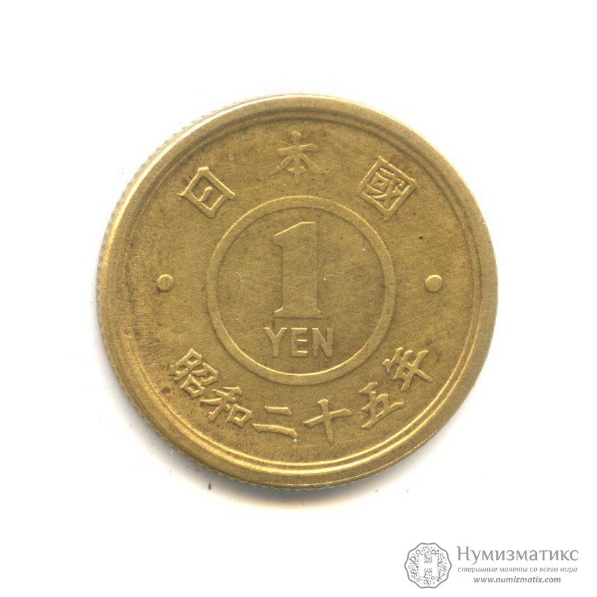 Монета регулярного выпуска «1 йена 1950 года».Хирохито (Сёва) (1948-1989) (Япония).Латунь.