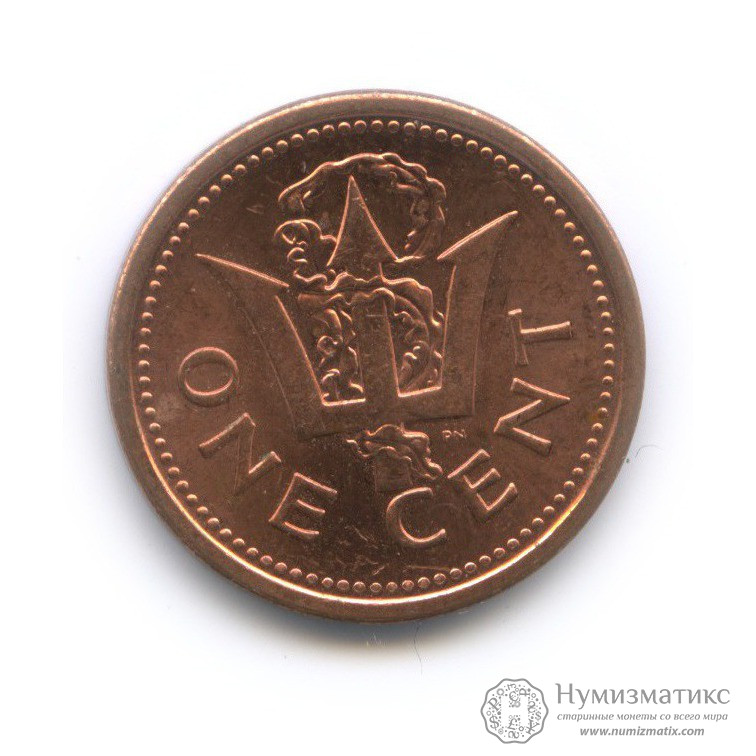Монета регулярного выпуска «1 цент 2008 года».Королева Елизавета II (1973-2013) (Барбадос).Сталь с медным покрытием.