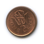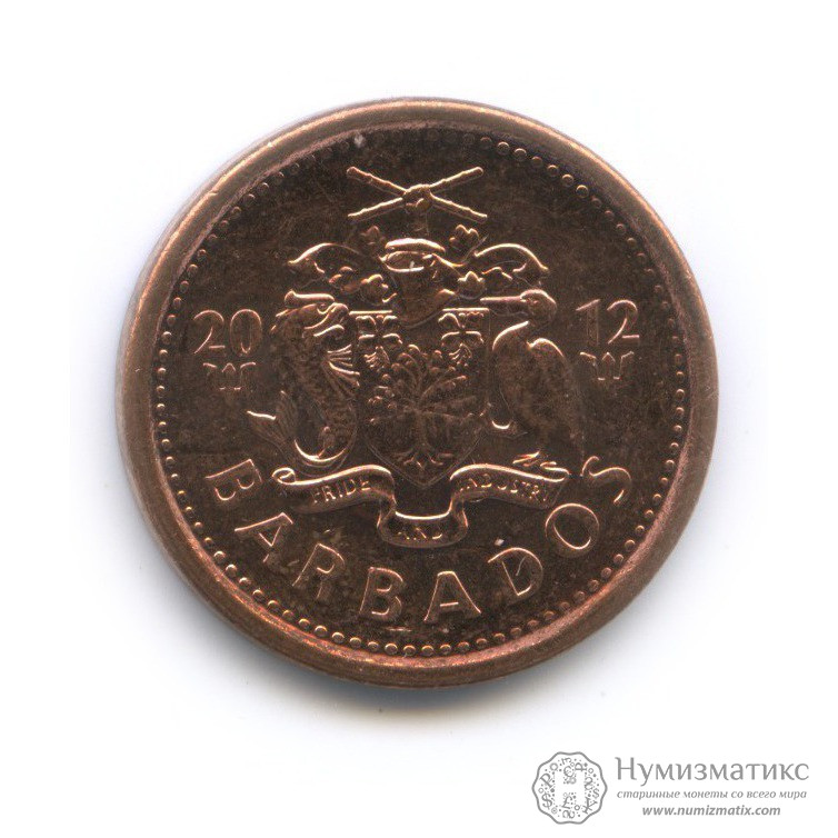 Монета регулярного выпуска «1 цент 2012 года».Королева Елизавета II (1973-2013) (Барбадос).Сталь с медным покрытием.