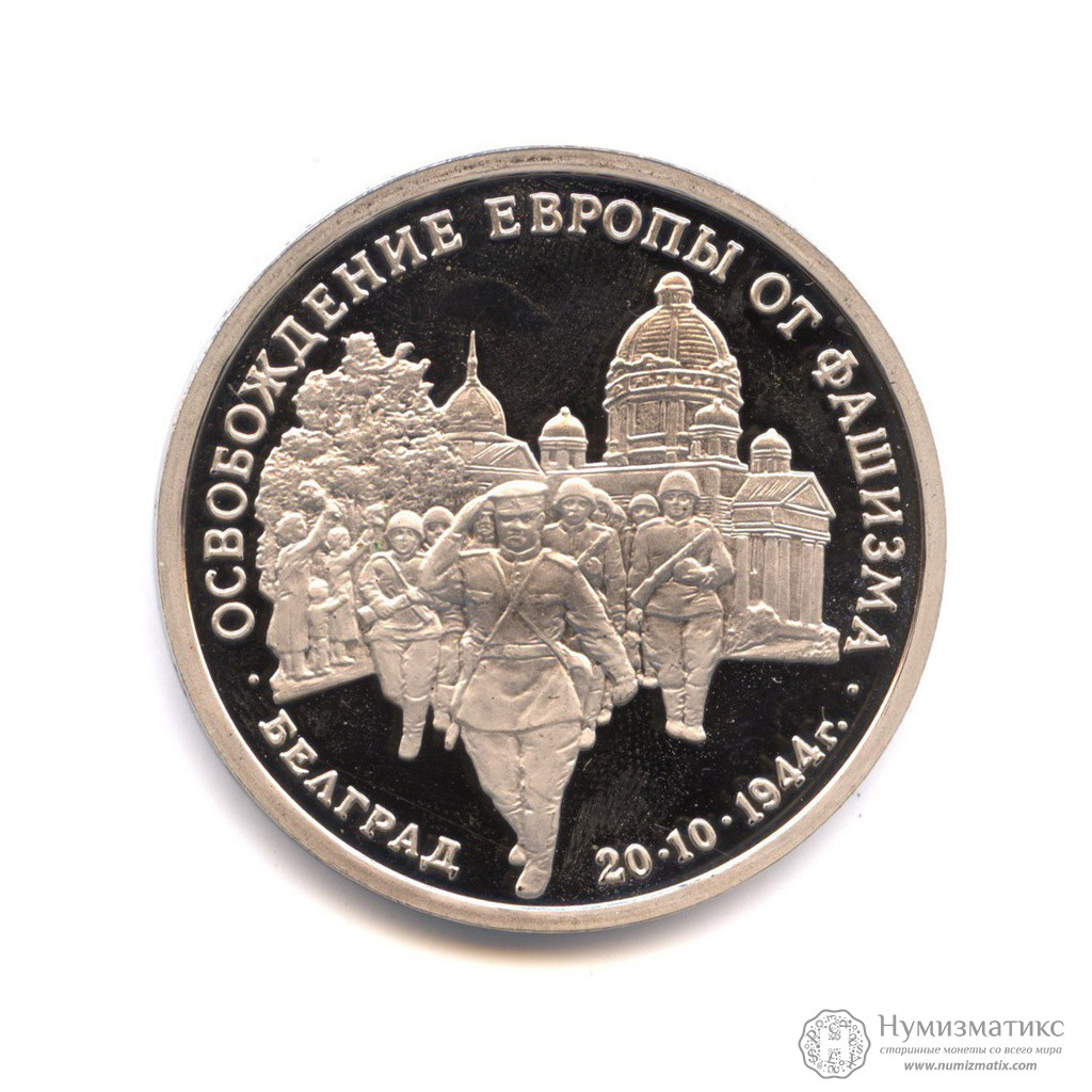 Коллекционная монета «3 рубля 1994 года „Освобождение Европы от фашизма. Белград“».