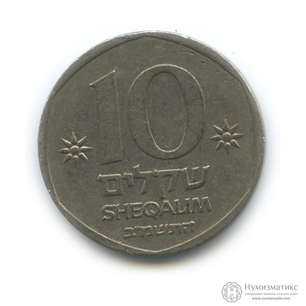 Монета регулярного выпуска «10 шекелей 1982 года».Государство Израиль (1980-1985).Медно-никелевый сплав.