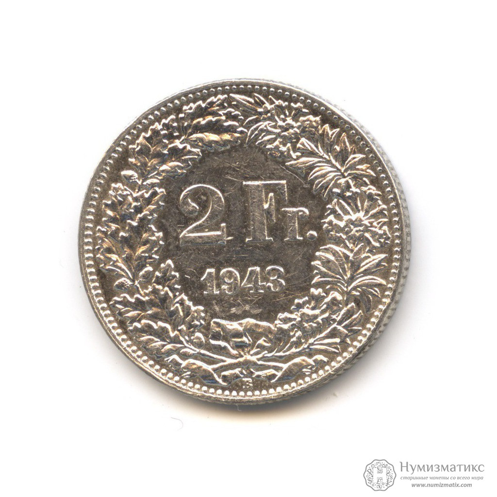 2 франка 1943 года (Регулярный выпуск) — Швейцария