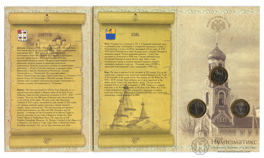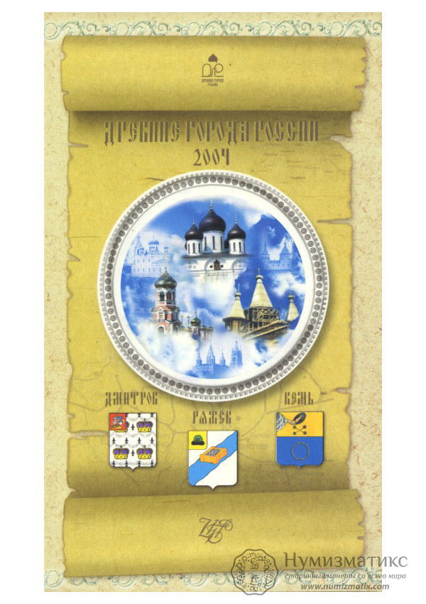 Набор монет 2004 «Древние города: Дмитров, Ряжск и Кемь»