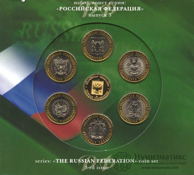 Набор монет РоссииСерия: Российская ФедерацияВ наборе 6 монет 2007 года выпуска и 1 жетон