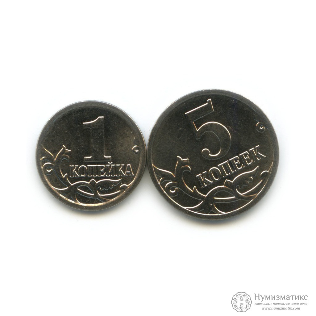 Набор из двух монет РоссииРегулярный выпуск1 копейка и 5 копеек 2014 год