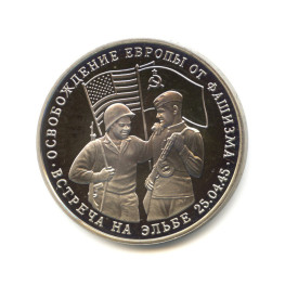3 рубля 1995 — Встреча на Эльбе. Освобождение Европы от фашизма PROOF — Россия