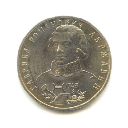 1 рубль 1993 — 250 лет со дня рождения Г. Р. Державина UNC — Россия