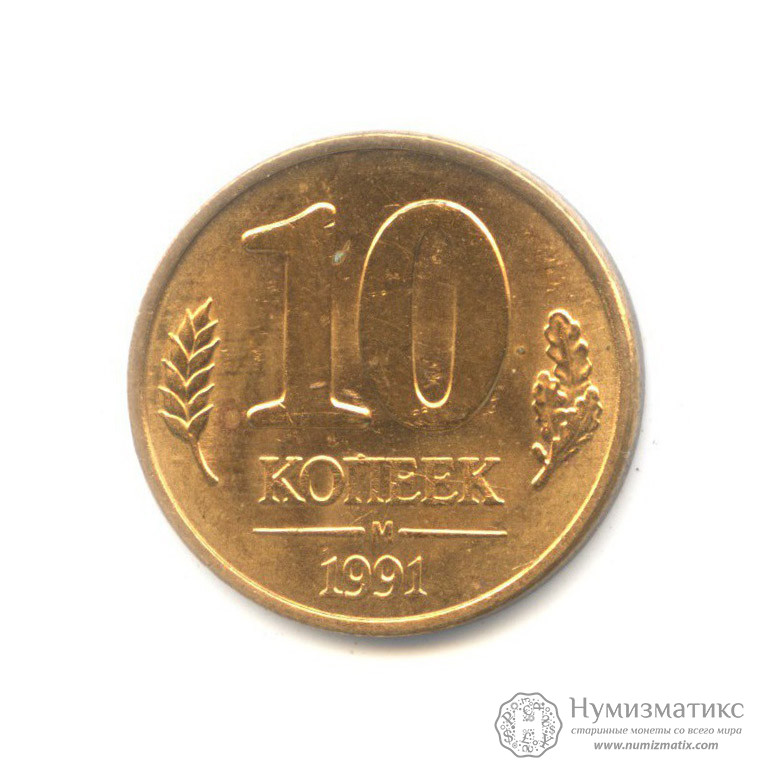 Монета регулярного выпуска «10 копеек 1991 года».