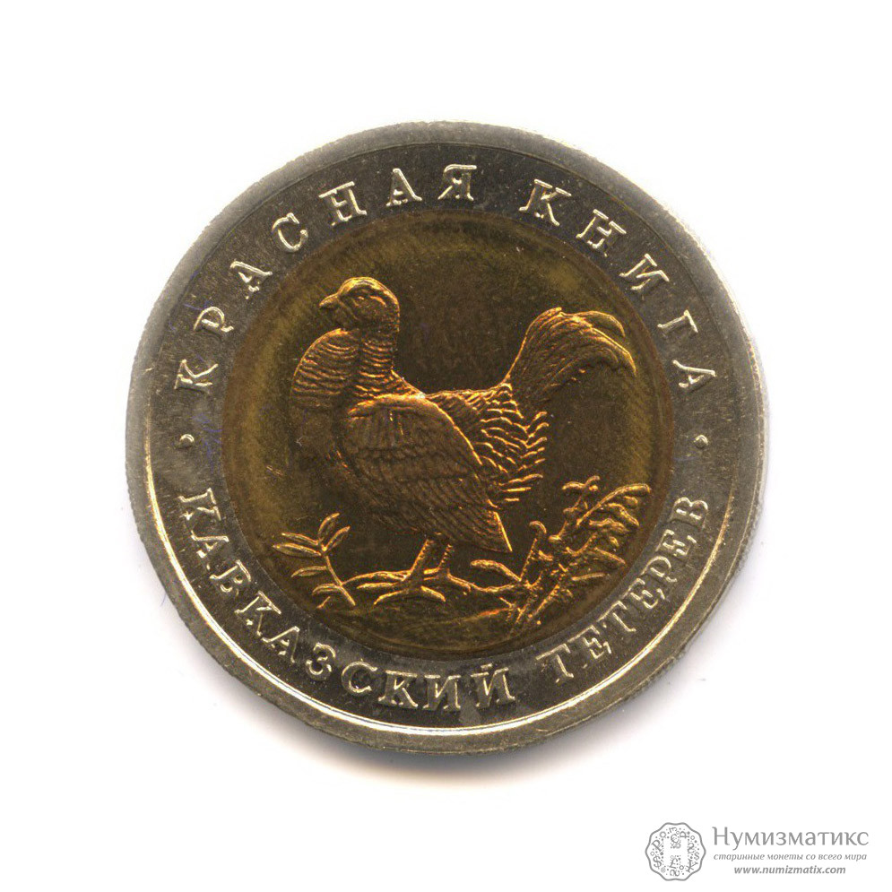 Юбилейная монета «50 рублей 1993 года „Кавказский тетерев-Красная книга“».