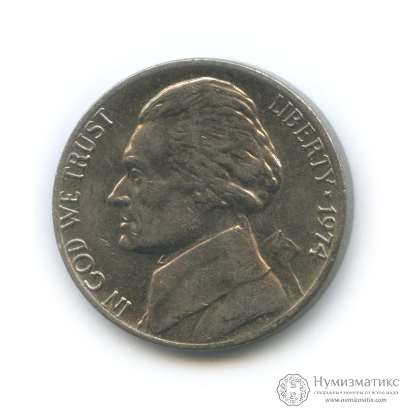 5 центов 1974 года «Без отметки МД» — США