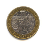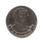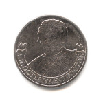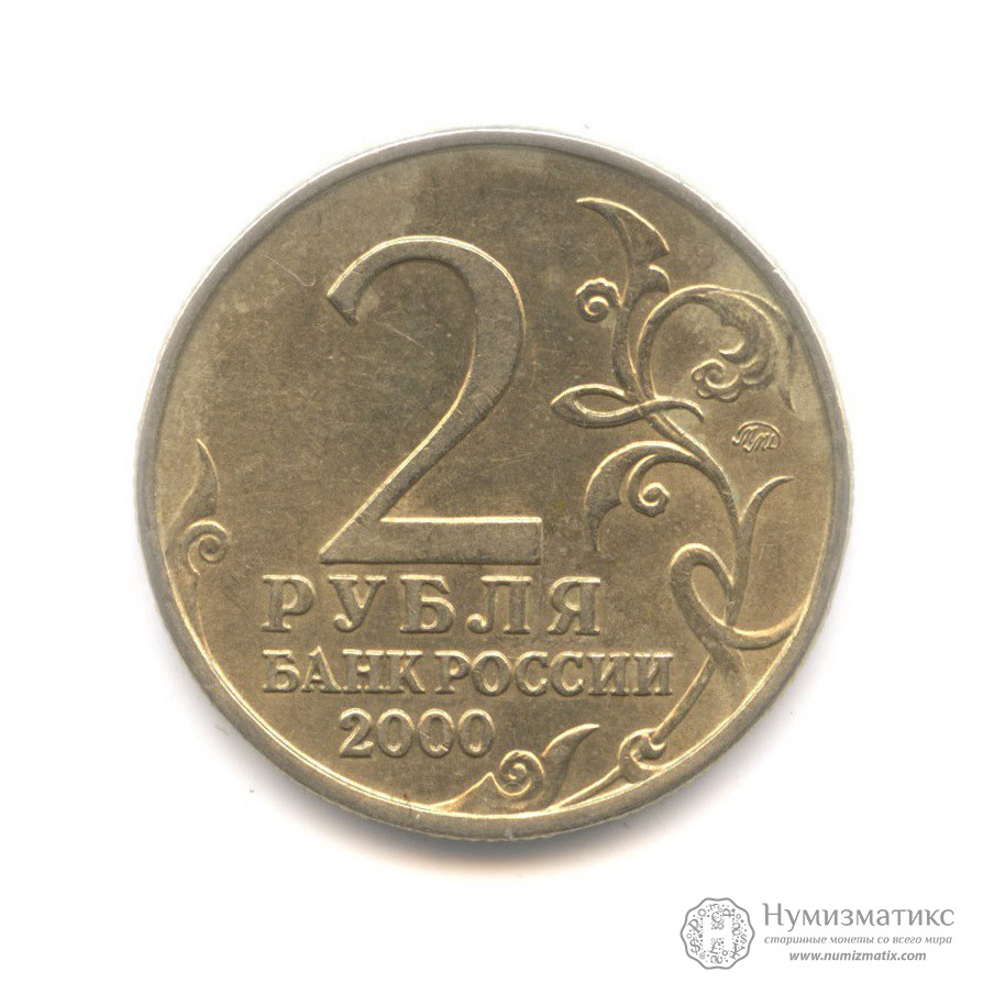 В центре диска - обозначение достоинства монеты в две строки «2 РУБЛЯ», ниже — надпись: «БАНК РОССИИ», под ней — дата «2000», слева и справа — стилизованная ветка растения.