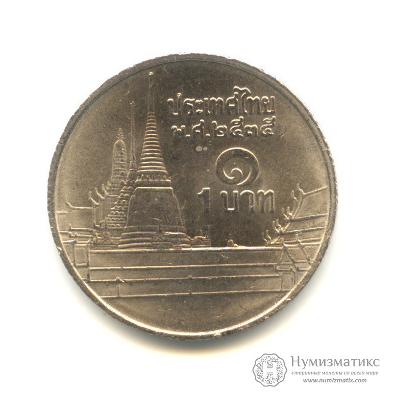 Монета регулярного выпуска «1 бат 1992 года».Король Рама IX (1986-2014) (Таиланд).Медно-никелевый сплав.
