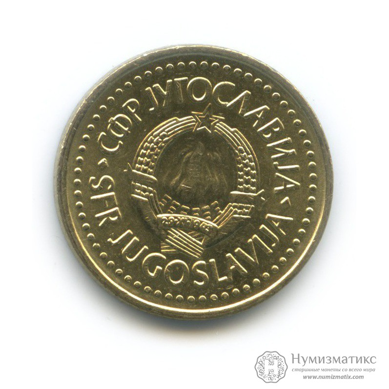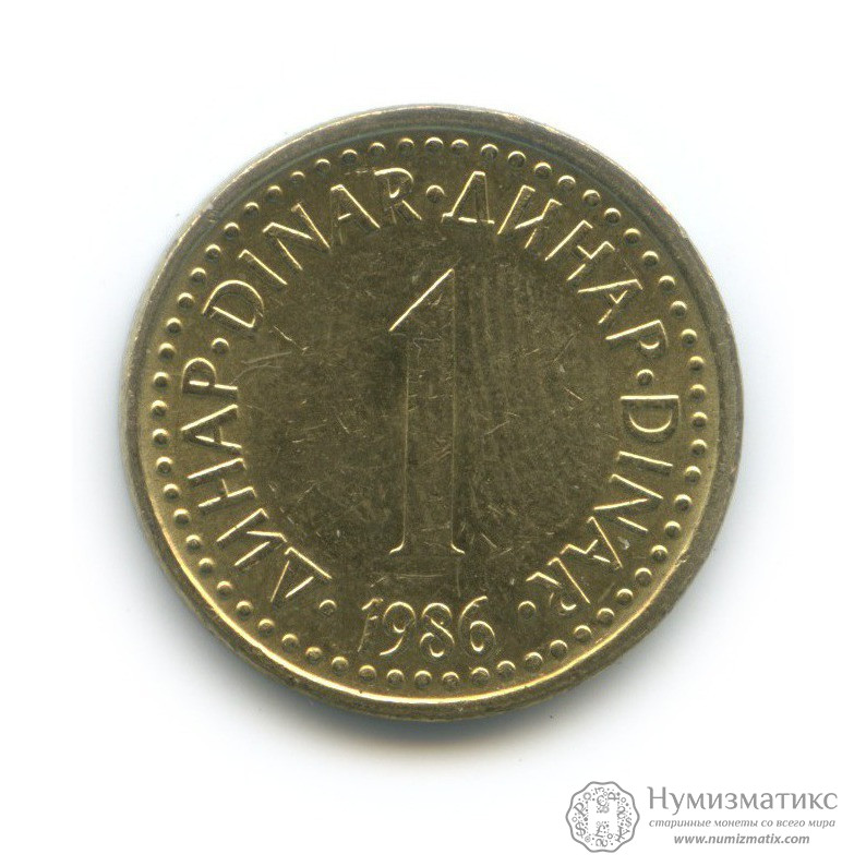 Монета регулярного выпуска «1 динар 1986 года».Социалистическая Югославия (1945-1992) (Югославия).Никелевая латунь.