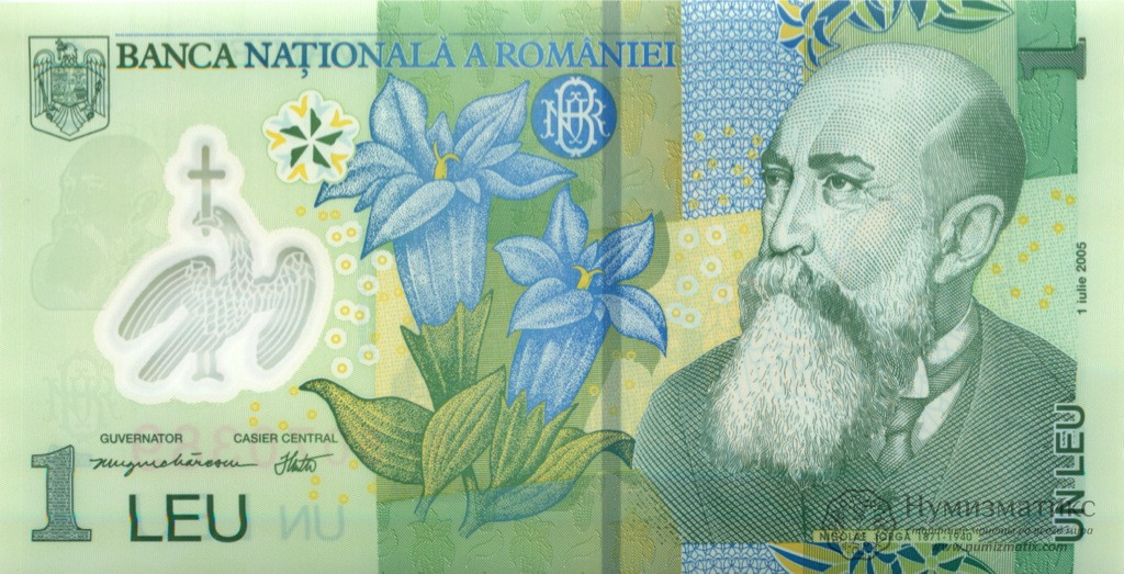 Банкнота РумынииМатериал: полимерРазмер: 120х62мм