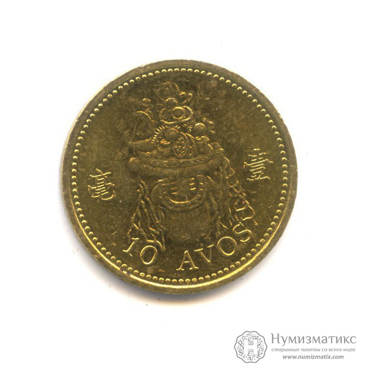 Монета регулярного выпуска «10 аво 1993 года».Специальный административный район (1992-2013) (Макао).Латунь.