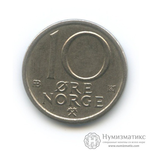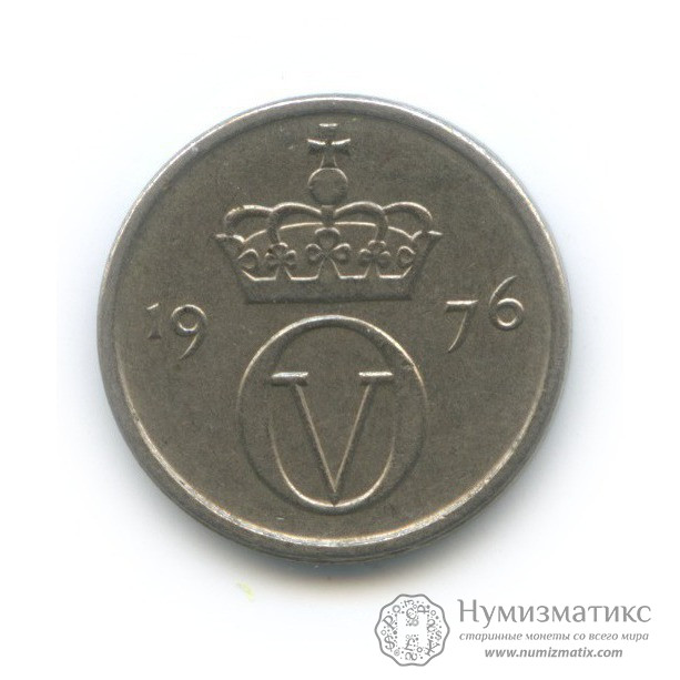Монета регулярного выпуска «10 эре 1976 года».Король Улаф V (1958-1991) (Норвегия).Медно-никелевый сплав.