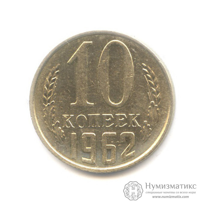 Монета регулярного выпуска «10 копеек 1962 года».Советский Союз (1961-1991) (СССР).Медь-Никель-Цинк.