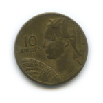 Монета регулярного выпуска «10 вон 1970 года».Республика Корея (1966-1982) (Южная Корея).Латунь.