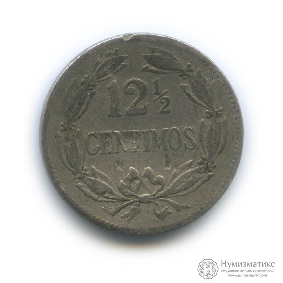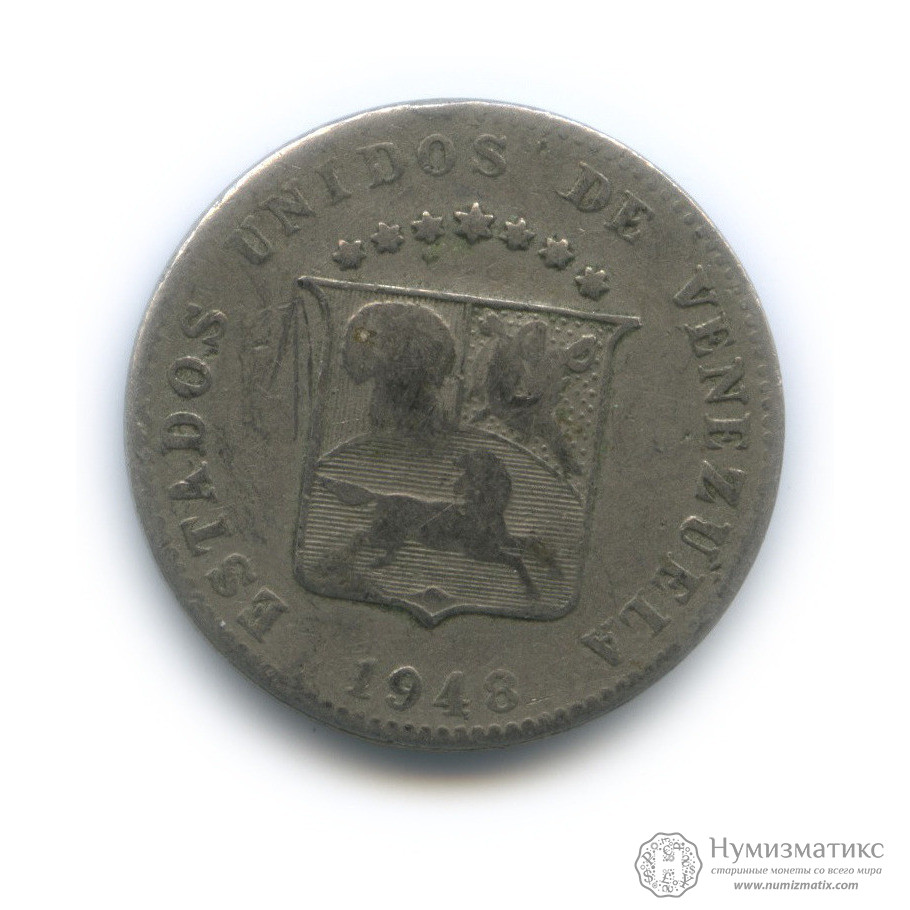 Монета регулярного выпуска «12½ сентимо 1948 года».Соединенные Штаты Венесуэлы (1879-1952).Медно-никелевый сплав.
