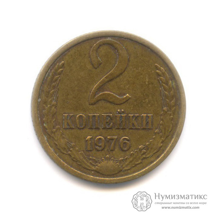 Монета регулярного выпуска «2 копейки 1976 года».Советский Союз (1961-1991) (СССР).Латунь.