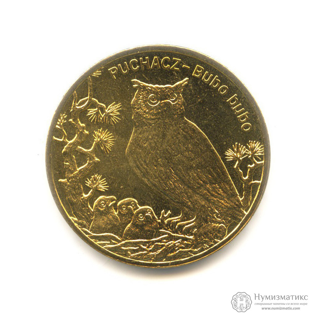 Юбилейная монета «2 злотых 2005 года „Филин-Всемирная природа“».Третья Республика (1990-2014) (Польша).Латунь.