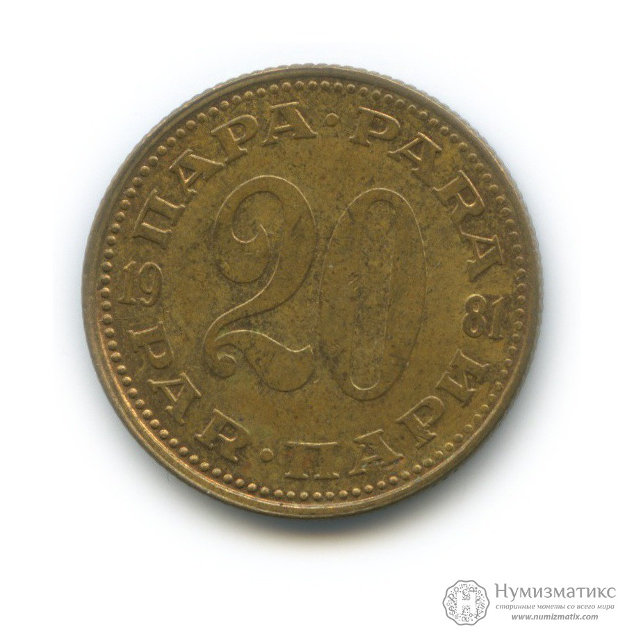 Монета регулярного выпуска «20 пара 1981 года».Социалистическая Югославия (1945-1992) (Югославия).Латунь.