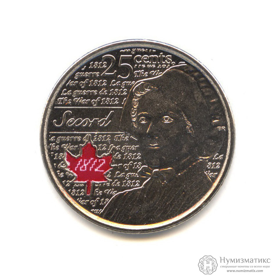 Коллекционная монета «25 центов (квотер) 2013 года „Лора Секорд, в цвете-Война 1812 года“».