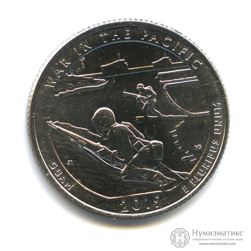 25 центов (квотер) 2019 D — Национальный исторический парк «Война на Тихом океане» на острове Гуам (UNC) — США