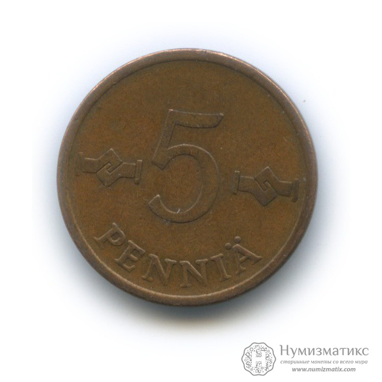 5 пенни 1963 года (Регулярный выпуск) — Финляндия