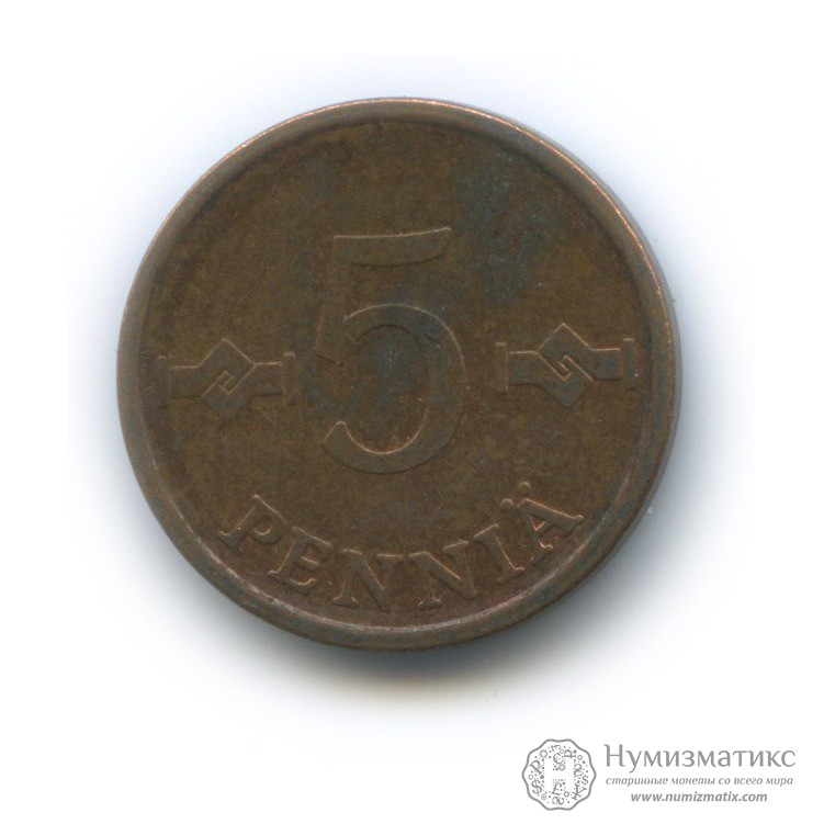 5 пенни 1975 года (Регулярный выпуск) — Финляндия