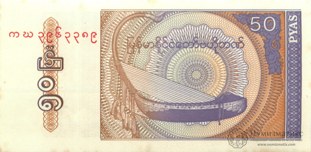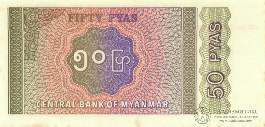 Банкнота МьянмыРазмер: 110х55ммСостояние: пресс (не была в обращении)