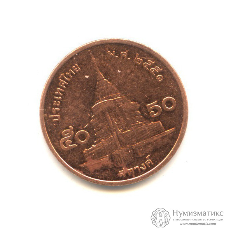 Монета регулярного выпуска «50 сатангов 2008 года».Король Рама IX (1986-2014) (Таиланд).Разновидность.